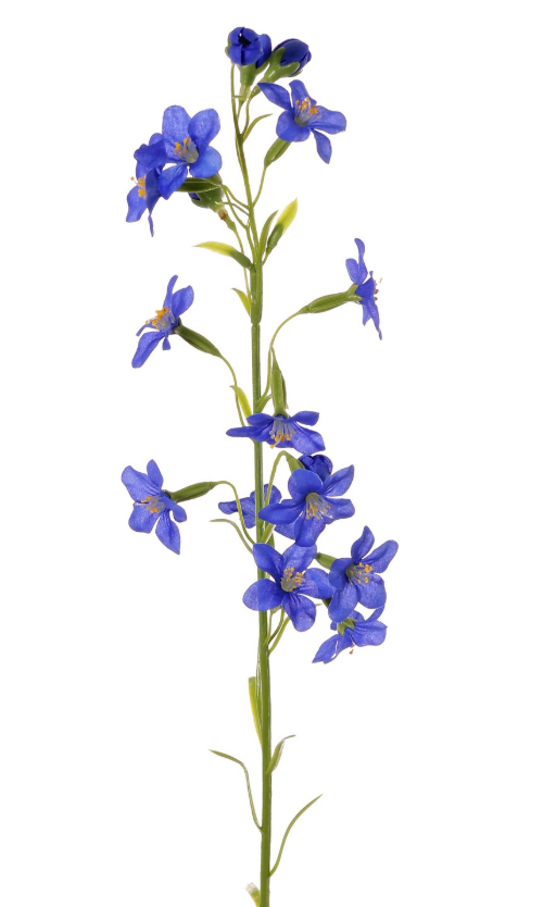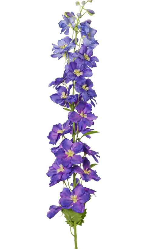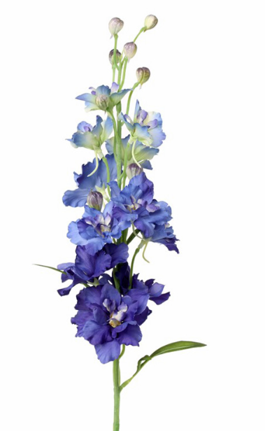 Deze zijden delphinium brengt met zijn lange, sierlijke vorm extra hoogte en een frisse, elegante uitstraling in elk boeket