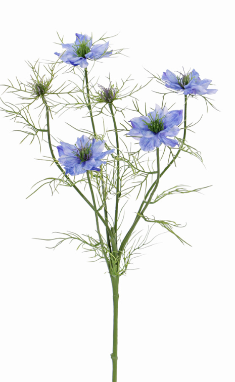 Deze zijden nigella brengt een luchtige, verfijnde uitstraling in elk boeket met haar fijne, speelse bloei en natuurlijke vorm.