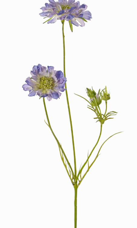 Deze zijden scabiosa geeft een zachte, elegante uitstraling aan elk boeket met haar verfijnde bloei en speelse vorm.