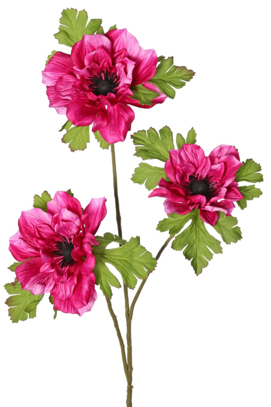Deze zijden anemoontak in roze heeft meerdere verfijnde bloemen en geeft elk boeket een speelse, luchtige en elegante uitstraling.