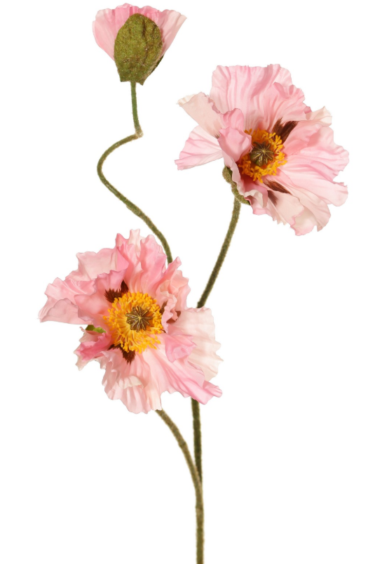 Deze zijden papaver in roze heeft een zachte, losse bloei en geeft elk boeket een speelse, natuurlijke veldbloemenlook met een licht dromerig effect.